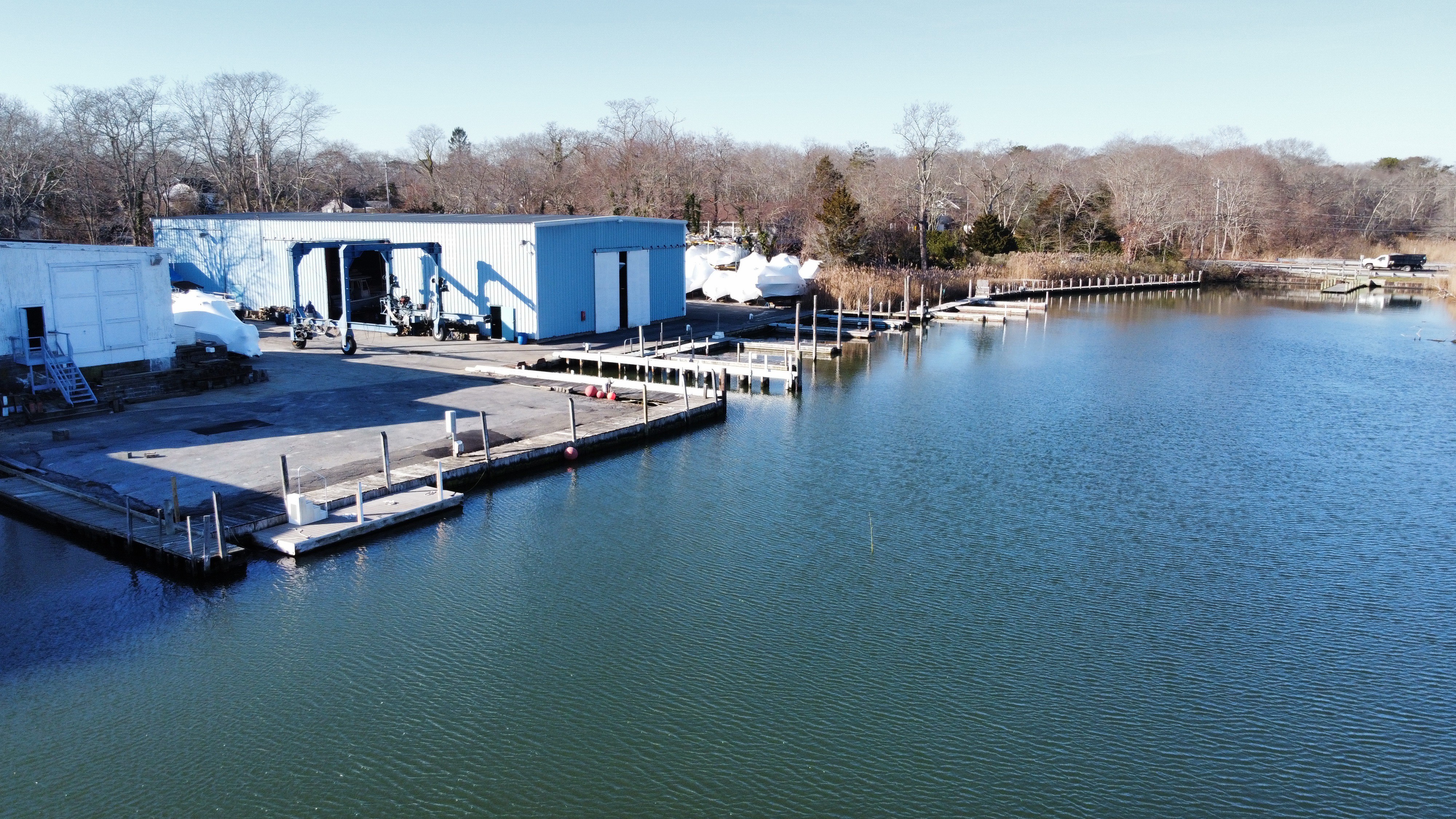 A look at the docks, harbor, and surrounding waterfront.